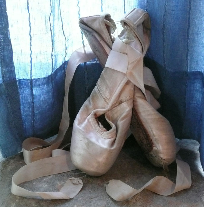 On my 12th birthday, she gave me the most splendid pair of toe shoes. I had been taking ballet since the age of three and had a new pair of toe shoes every year since I was 8 or 9. But that year, I was ready for the “big time.” We went to Hollywood to an ancient woman who made toe shoes by hand. She was Russian and her tiny store smelled of cat piss and burnt coal. She had only a few teeth left and gray hair down past her waist. She was awesome. Those toe shoes were magical…as you can see, I still have them.